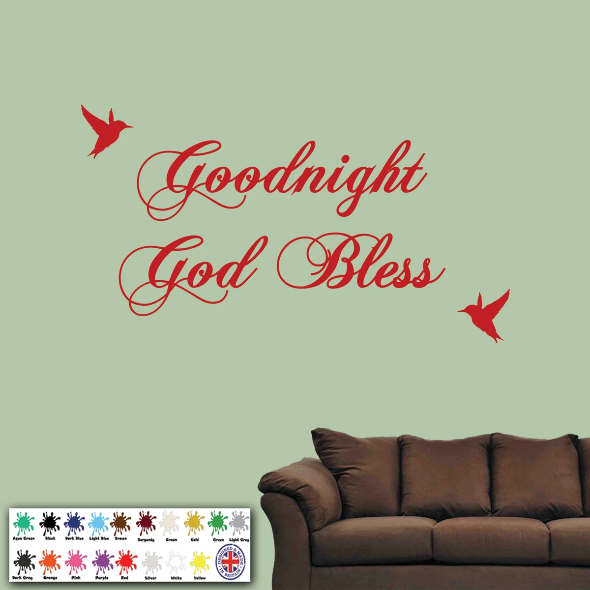 Wall Sticker, Goodnight God Bless Quote, Wall art, Decal, Birds